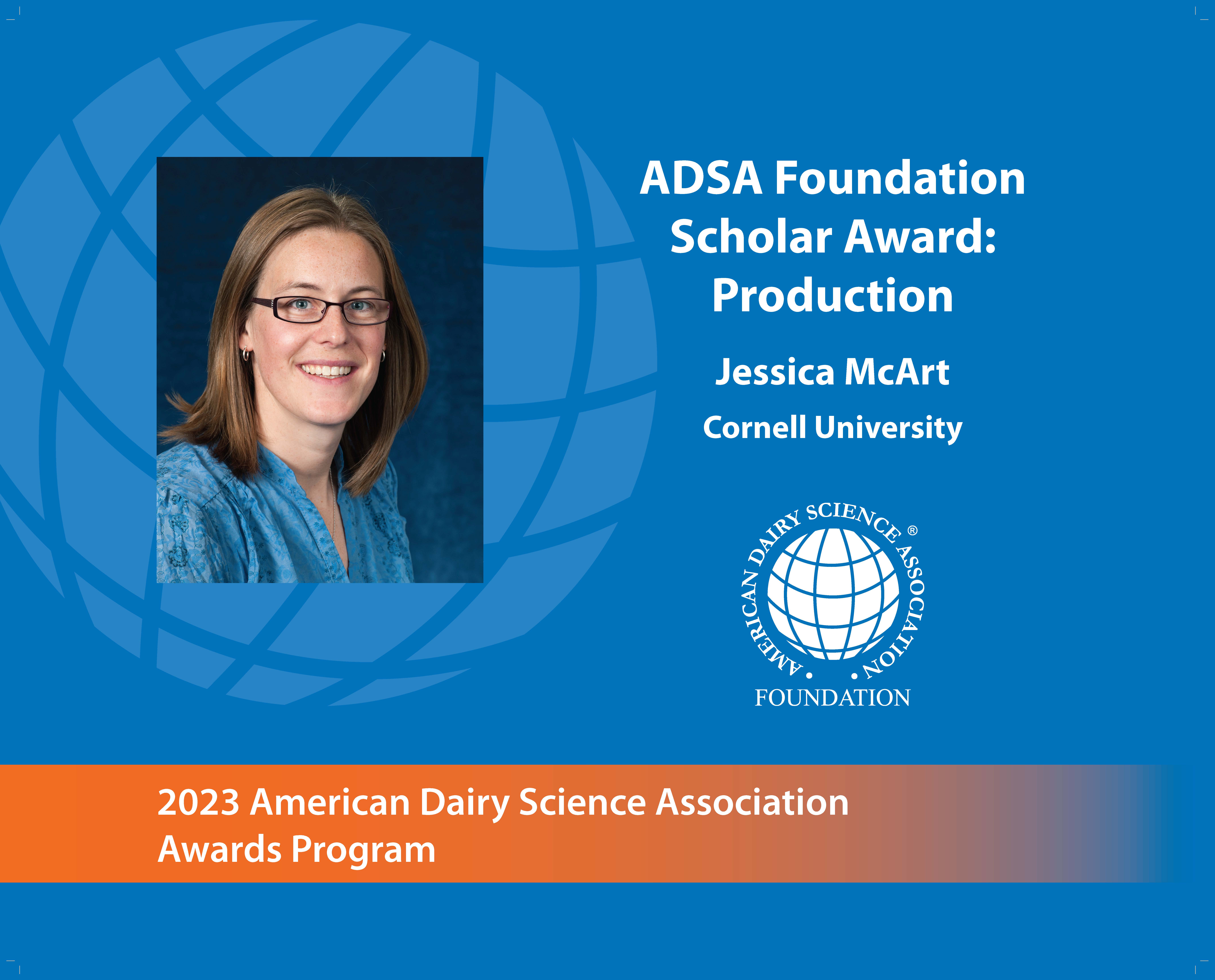 It is with great pleasure that ADSA and the ADSA Foundation present Jessica McArt with the 2023 ADSA Foundation Scholar Award in Dairy Production.