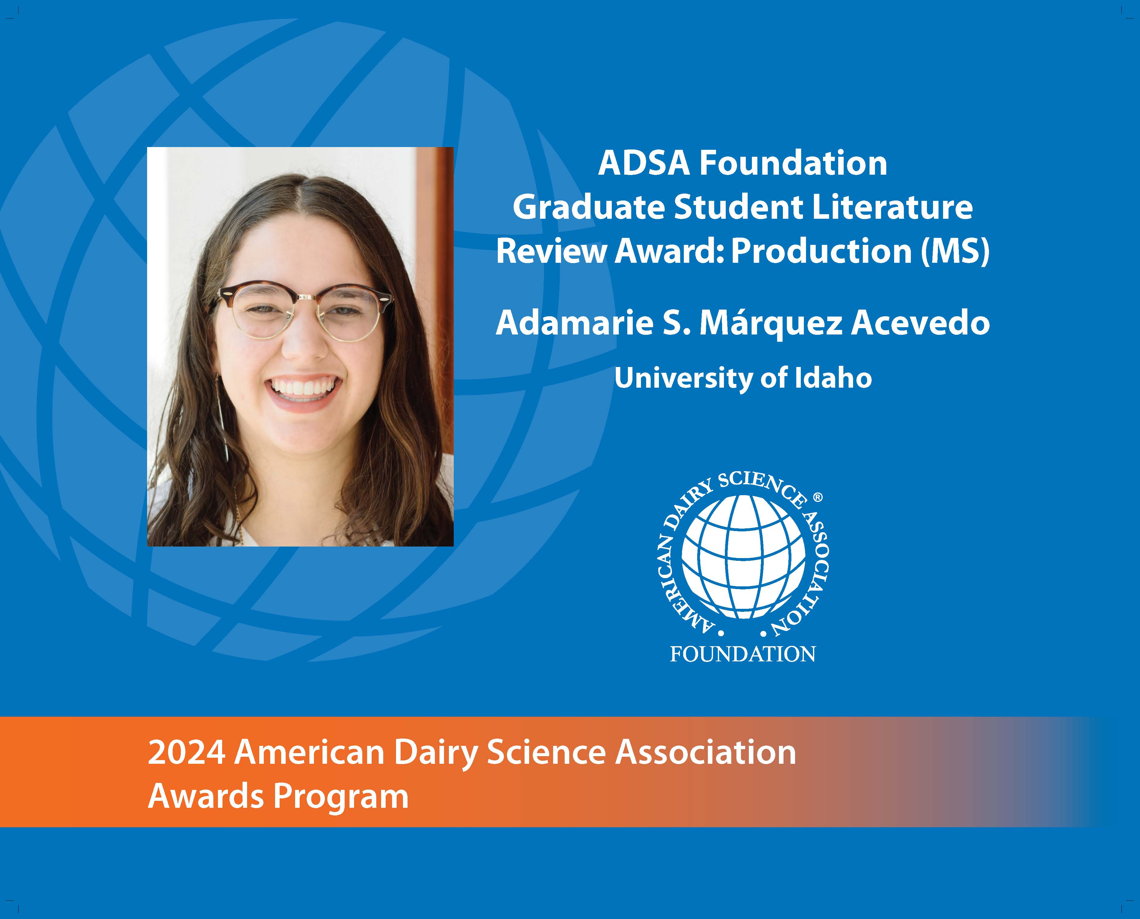 It is with great pleasure that ADSA and the ADSA Foundation present Adamarie S. Márquez Acevedo with the 2024 ADSA Foundation Graduate Student Literature Review Award: Production Division (MS).