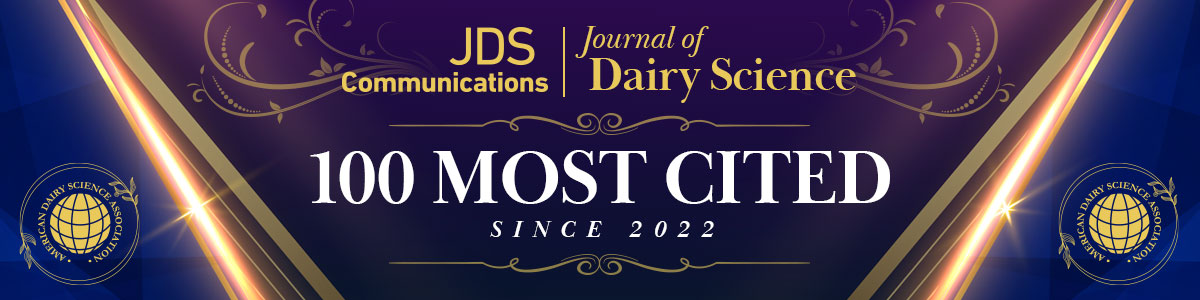 Congratulations to the following authors. The Journal of Dairy Science® and JDS Communications® recently recognized these papers and authors as being among the most highly cited and recently published (2022–present). Papers are listed in the order in which they were published in the journals.